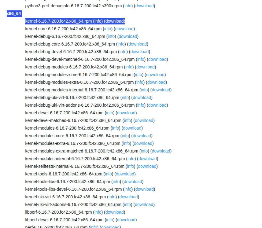 >>3640347 sudo rpm-ostree override replace \ ./kernel-6.16.7-200.fc42.x86_64.rpm \ ./kernel-core-6.16.7-200.fc42.x86_64.rpm \ ./kernel-modules-6.16.7-200.fc42.x86_64.rpm \ ./kernel-modules-extra-6.16.7-200.fc42.x86_64.rpm И еще докачай остальные модули и потом делай так.