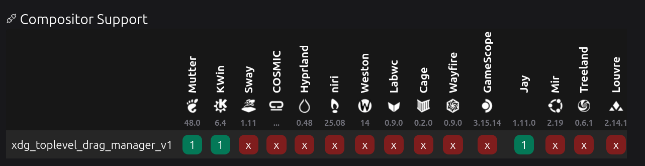 >>3641755 Всем похуй на линуксдесктоп. Вейленд вообще пишется под всякую embedded хуитку где вертится эталонный weston, в котором эти ваши обходные десктопные костыли не нужны.