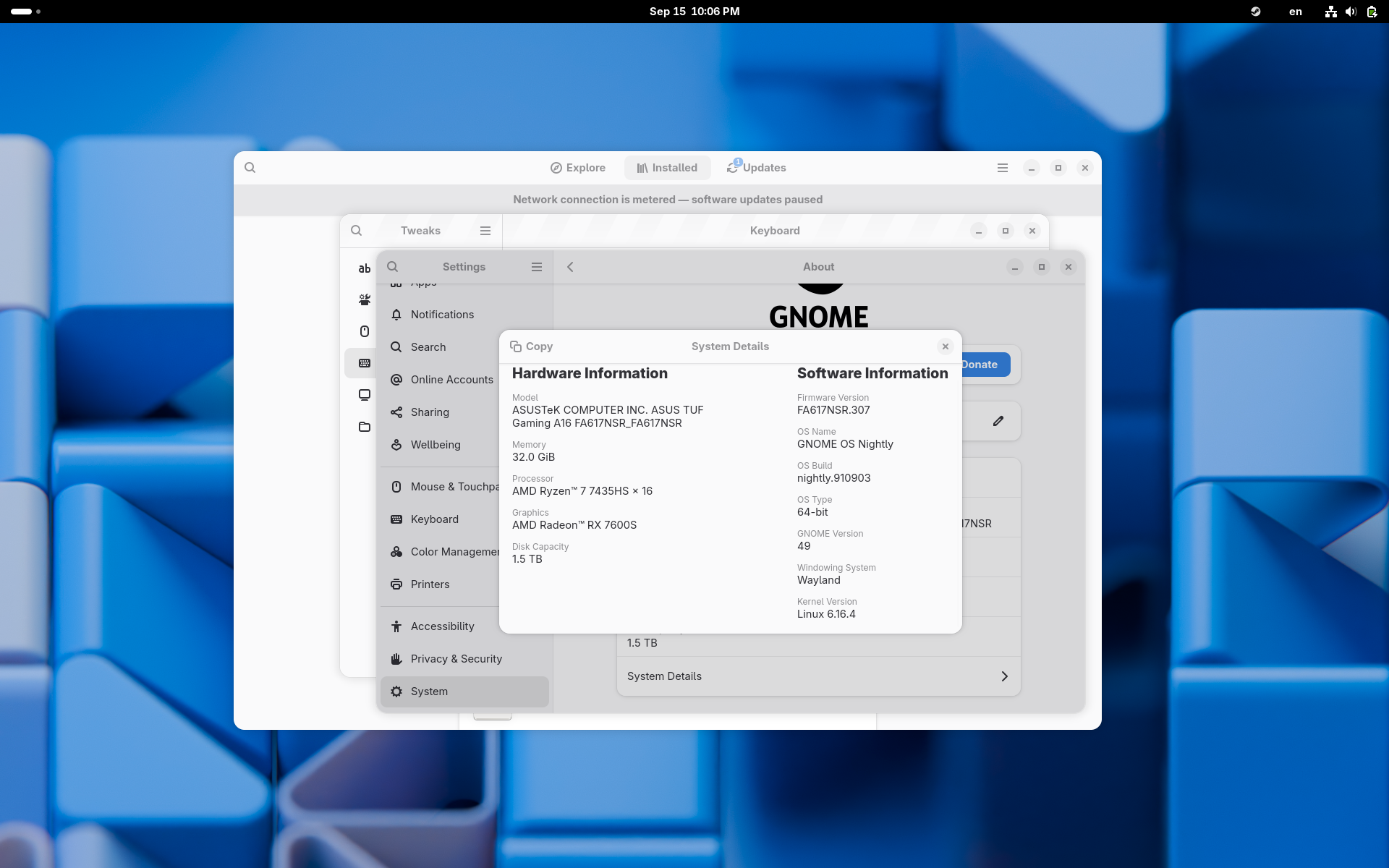 Рабочий стол обновлён до выпуска GNOME 49. Прекращена поддержка сеанса GNOME на базе X11 и оставлен только сеанс на базе Wayland, в котором для запуска X11-приложений применяется XWayland. Даже в пидоре вернули иксы, Шатлврот совсем возненавидел юзверов, хотя есть за что, годами ж поливали навозом, ну жрите говно арч теперь.