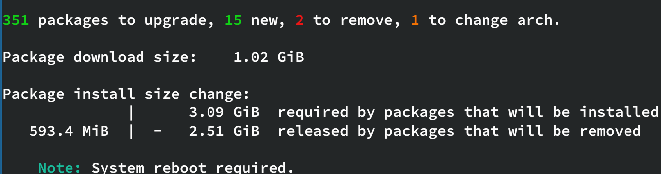 >>3640348 error: Could not depsolve transaction; 1 problem detected: Problem: package kernel-6.16.7-200.fc42.x86_64 from @commandline requires kernel-core-uname-r = 6.16.7-200.fc42.x86_64, but none of the providers can be installed - cannot install both kernel-core-6.16.7-200.fc42.x86_64 from updates and kernel-core-6.16.4-104.bazzite.fc42.x86_64 from @System - cannot install both kernel-core-6.16.7-200.fc42.x86_64 from updates-archive and kernel-core-6.16.4-104.bazzite.fc42.x86_64 from @System - conflicting requests