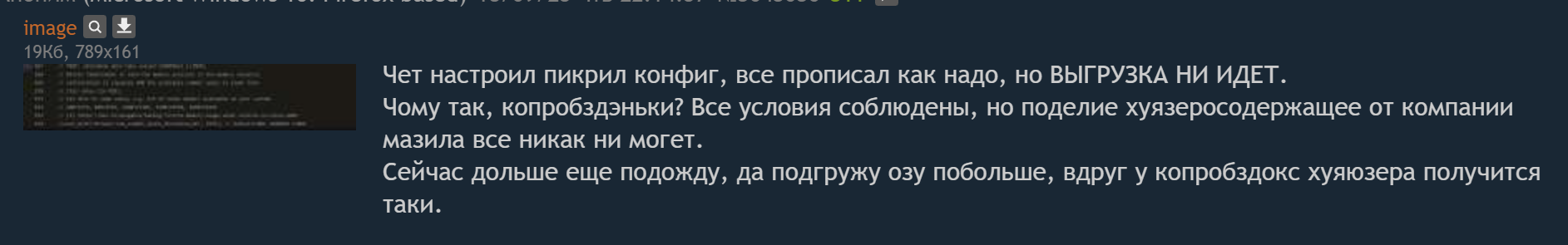 А как же славно, что НОРМАЛЬНЫЕ браузеры имеют пикрил функции из коробки. Да даже копробздокс, господи прости, имеет такую базовую вещь.