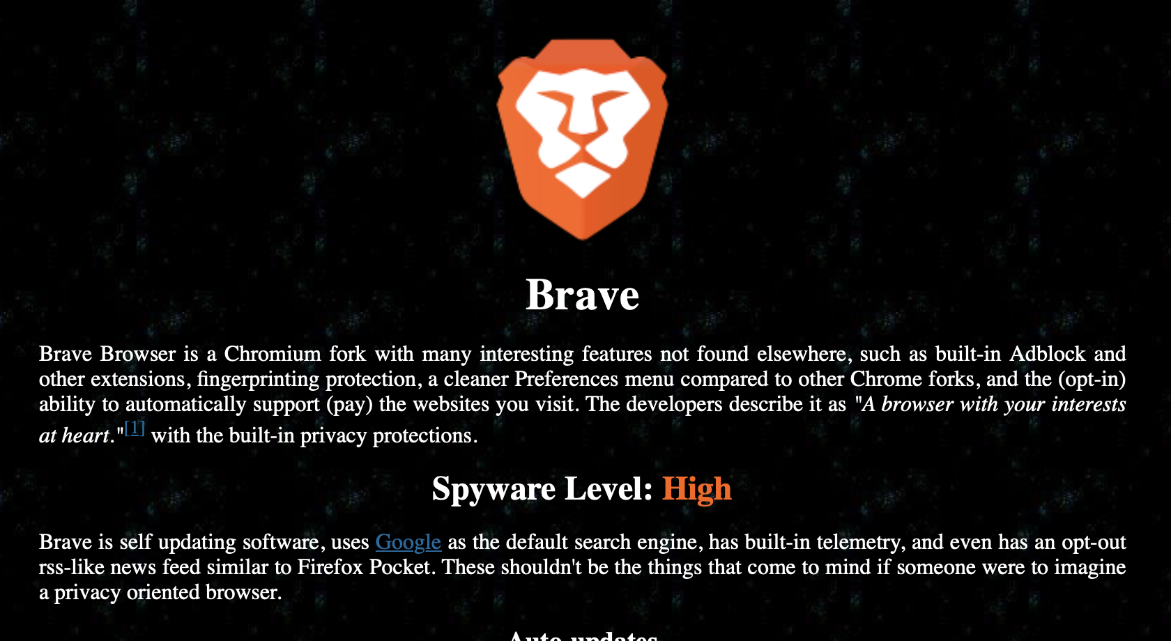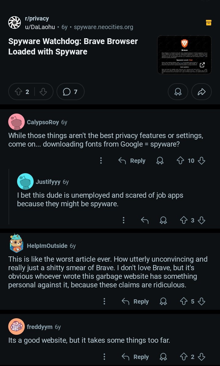 Вот это да! Советую, кста, ознакомиться всем, кто с этой помоечкой предпринимает иметь какие бы то ни было связи. Придётся вызывать священника, чтобы очистил моё железо от скверны, когда эту помоечку тестировал на кривость отключения анимаций. https://spyware.neocities.org/articles/brave