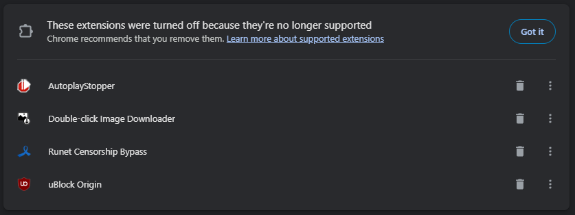 >>3643586 А у меня типо не режим полной фильтрации со всеми фильтрами? Что интересно, раньше, когда гугл внедрил уже мв3, но ещё не нужно было крутить флаги, чтобы вернуть uBO, у меня как-то в один момент перестал работать этот самый uBO на ютубе. На всех сайтах работал, а в ютубе нет от слова совсем. И потом я решил ради интереса протестировать uBOL. Несколько видео открывались без рекламы, но потом таки реклама начала просачиваться. Я тогда ужаснулся со всей этой ситуации и закрыл хром нахуй. uBOL с самого начала был кастрированным, это говорили все, включая гориллу. Но некие отдельные индивидуумы начали защищать это поделие, попутно рассказывая о приросте "скорости".