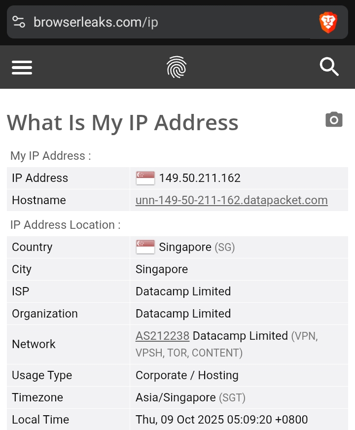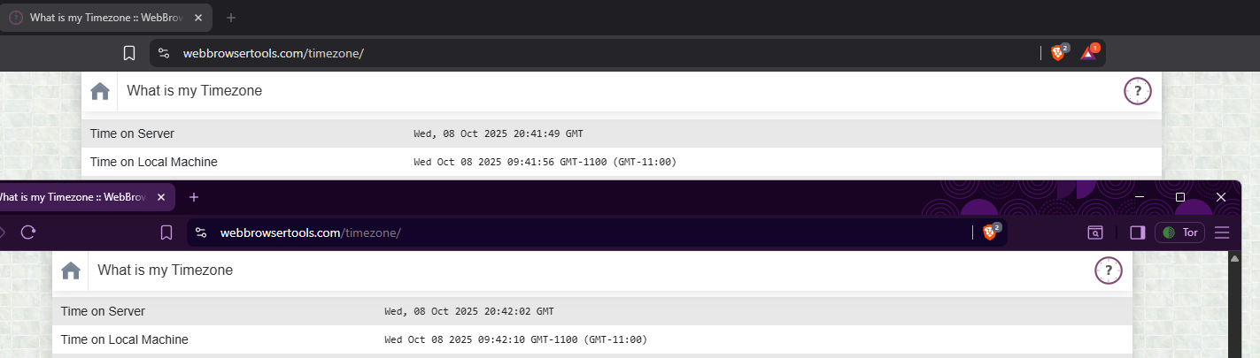 >так вот с допустим айпишником Германии время переводится на час назад. >У меня работает все, да и ладно >Ебло, сейчас врубил впн сингапурский, таймзона поменялась. И это на телефоне, сейм ситуация с десктопным брейвом. В чем твоя проблема? Почему у тебя вечно что-то не работает? 🤡🤡🤡