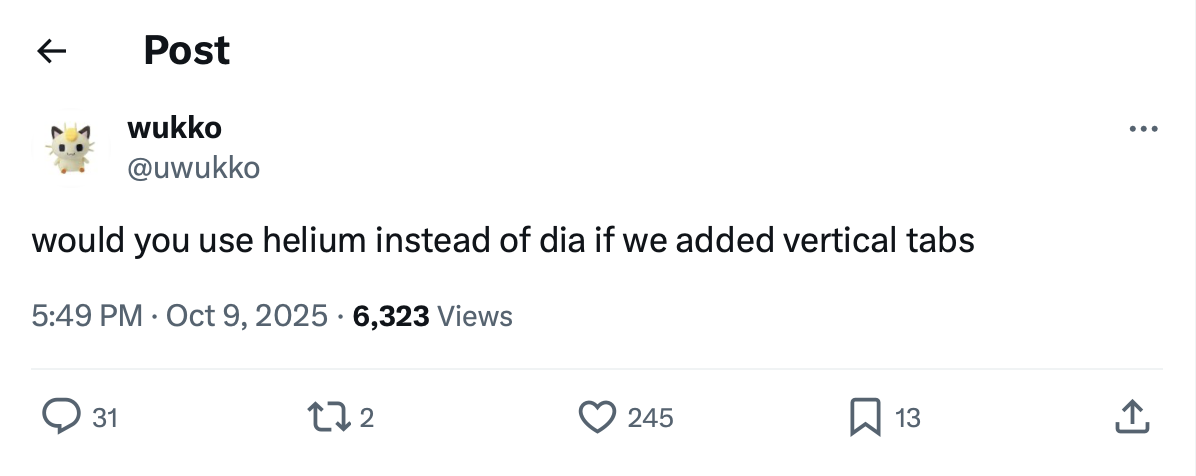 >>3651145 Пользоваться вертикальными вкладками и не Zen браузером это диагноз. Ни в одном браузере они не реализованы так хорошо, как в Zen.