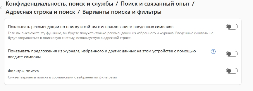 Как сделать чтобы в браузере Edge не сохранялись мои поисковые запросы, которые я ввожу в адресную строки и не вылезали, когда я начинаю вводить текст? Раньше была настройка, а сейчас не найду.