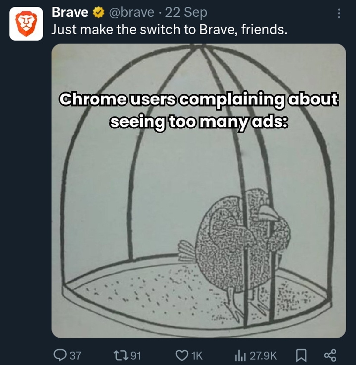 > А вообще, я вот сейчас понял, что брейв это таки истинно браузер для посвященных. Истинно браузер для умственно обделённых. Поправил, не благодари.