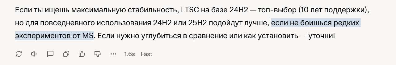 >>3648689 Это всё булщит и эйай слоп, ты не сможешь доказать, что лтсц стабильнее обычной винды, опираясь на инфу от самой МС. Отсутсвие изменений не равно повышенная стабильность, если изначально имеем говнокод