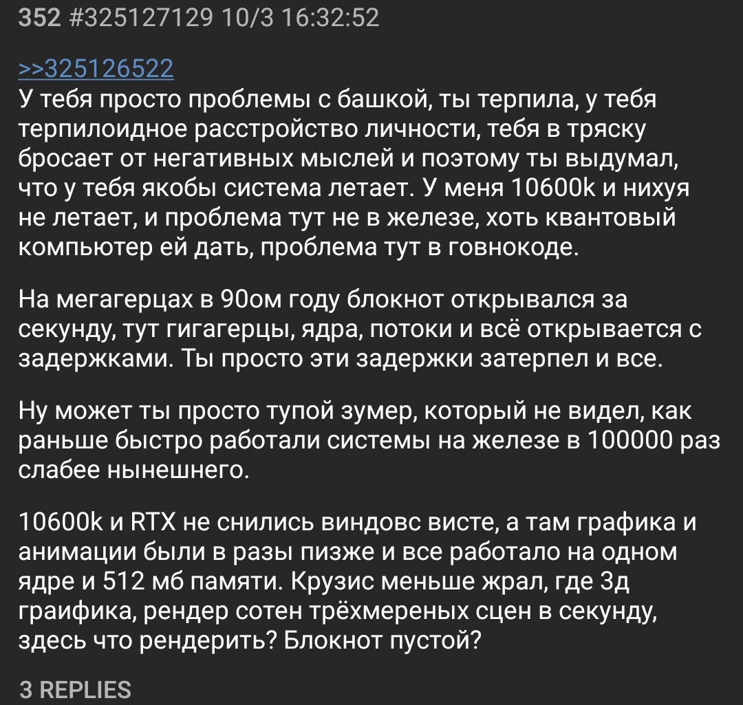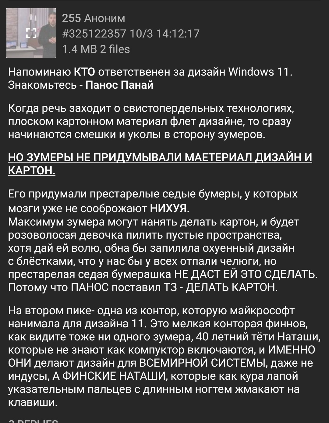 Угар канеш. Вот я и говорю, зумеры должны были видеть виндофс 2000/98, видеть как оно было и должно быть, видеть изначальный замысел. То говно, которое мы имеем сегодня - это НЕ НОРМА.