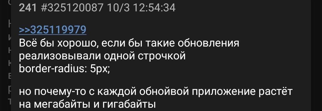 >>3649466 > Посмотри какое же это уебанство. Радиус закругления - пиздец, это некрасиво! Раньше было лучше. А кнопки эти сверху как сделаны - это вообще верх долбоебизма... это всё из за мобил