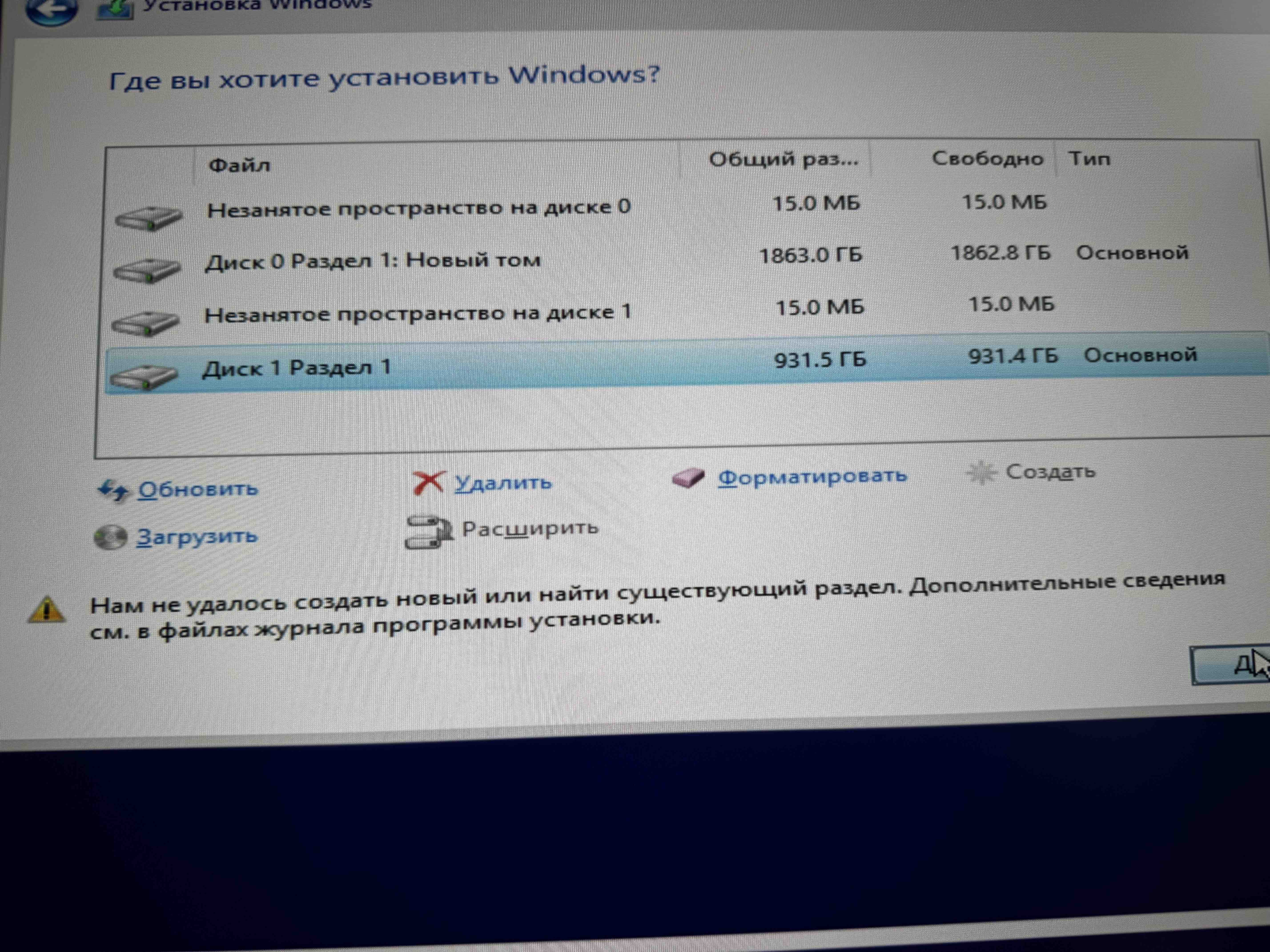 удаляй всё нахуй там внизу кнопка стоит удалить удали все разделы у тебя останется одно пустое пространство на 2тб на него нажми и нажми установить винда автоматом создаст раздел для загрузчика и диск с для винды потом после установки сразу скачай прогу для разбивки диска и разбей диск на два диска если так хочешь диск Д между с и д создай пустой раздел 500мб на всякий случай мало ли захочешь на д установить другую Винду просто погонять