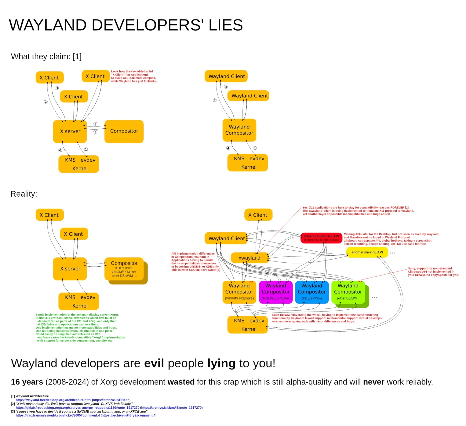 >>3651108 >Когда решат, что нужно сделать следующий шаг - будет новый релиз. Есть высокая доля вероятности что уже и не потребуется. >Зачем? Затем, что судя по темпам выкидывания иксов из популярных дистров ДЕшки без нормальной поддержки вейланда скоро только в обскурных дистрах на полтора юзера останутся. >Ты серьёзно не понимаешь в чём проблема всех всжшных проектов, которые сводятся к попилу бабок? Альт к ним не относится, его начали разрабатывать ещё в лохматые нулевые годы, когда ни про какое импортозамещение и прочее никто не думал и не говорил.
