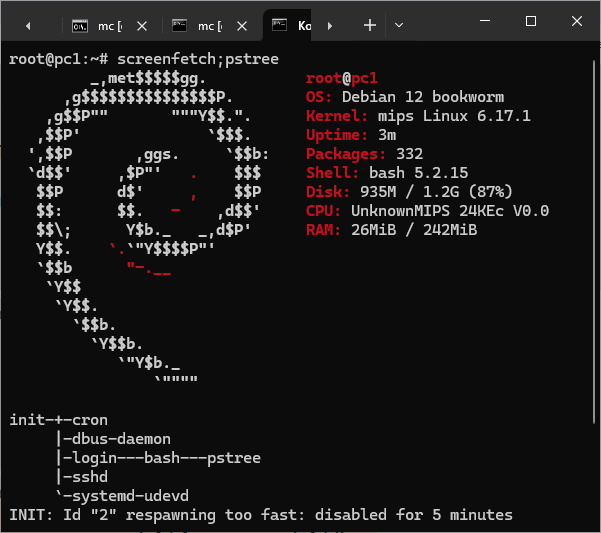 Кстати тут товарищ из кндр привез флешку с интересным артефактом. Ядро 5.4, пакетник pkg с ключами in/rm/up/rf, скочять что либо естно не получается, долбится в интранет. Есть ошметки /usr/src/pkg, видимо аналог портов. Стоит gcc 9.5. Дефолтный шелл - mksh. Инит - какая-то вариация rc, есть команда srvc с ключами en/ds/stop/start. По дефолту ставится lamp-стек с mysql 5.7.
