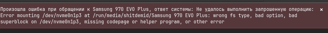 При попытке открыть диск стала такая вот ошибка вылезать, хотя вот ток недавно он открывался без выебонов. На всякий бутнулся в винду, на нем она стоит, всё норм работает. С чего вдруг он решил отвалиться? После ребута ничего не изменилось, всё также выбисывает бибу при попытке проникнуть.