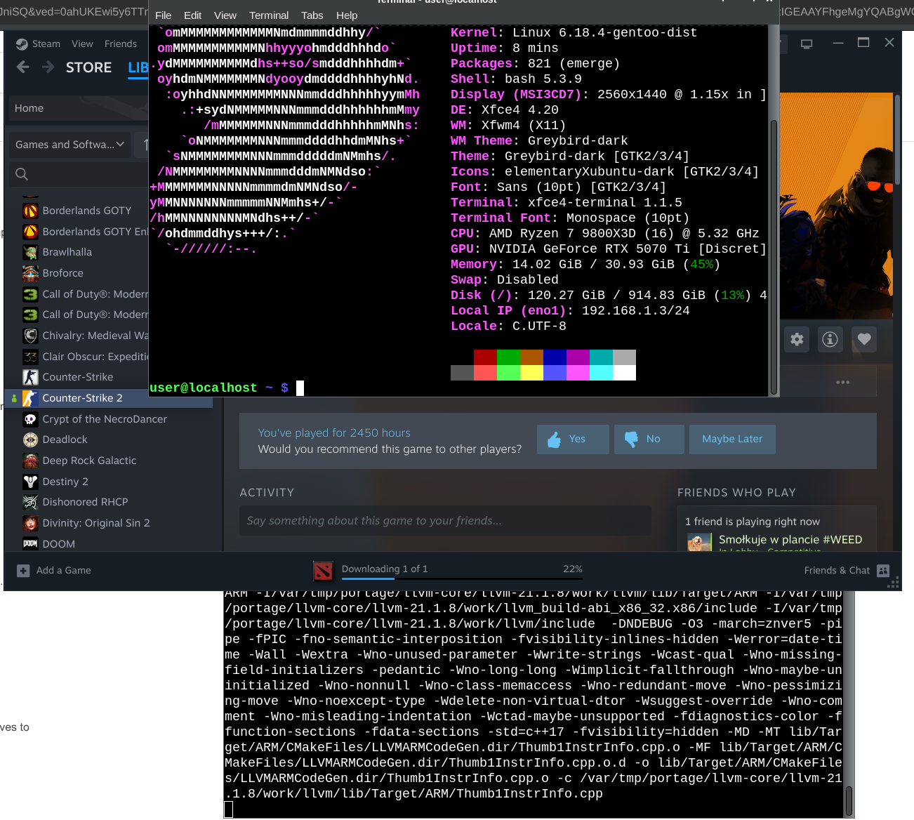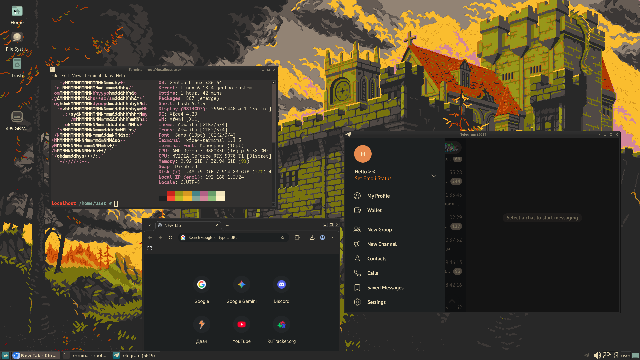 я gentoo установил, поздравьте меня! я на арче сидел, примерно месяц назад писал, что на войд перекатился, а сейчас решил рискнуть с gentoo.