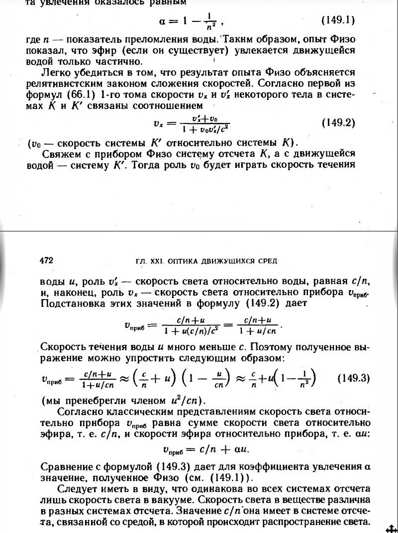 >>603345 >Измеряли наличие эфирного ветра, а не наличие эфира. Соответственно, отсутствие детекта ветра означает, либо отсутствие ветра >либо несовершенство устройства интерферометра. Дайте больше деняххх на более точные интерферометры, яно. Вообще если ты посмотришь схему даже тогда, он был в состоянии замерить хоть какое-то движение вроде порядка 1км/с не суть. >Измеряли наличие эфирного ветра Чувак, земля движется по орбите, если в твое время измерения движение земли совпало с "эфирным ветром" ты можешь провести опыт через пол года тогда эффект будет сильнее тк земля уже будет двигаться против "ветра", что и сделали, но не нашли. Можно было предположить, что земля увлекает "эфир" но это бы противоречило опытам физо. И звёздной аберрации. => Эфира нет. Буквально любой учебник общей физики раскрой, там написано. Опыт физо кстати так же через преобразования Лоренца описывается. И последний гвоздь забью в гроб твоих кащенских профессоров. Лоренцево сокращение предложил внезапно Лоренц, чтобы объяснить отрицательный результат опыта и спасти теорию эфира. Плюс все преобразования вывел Пуанкаре просто ища преобразования координат такие, чтобы уравнения электродинамики были инвариантными. Минковский заметил что ct, x, y, z дают не евклидово пространство. Эйнштей просто из готовых фактов сложил как говорится 1+1 и дал нормальную интерпретацию, что скорость света инвариантна, те одна и таже в любой инерциальной системе отсчета. И второе, все законы одинаковы во всех исо. В том числе и законы Эд. Короче говоря он сказал: "нахуй твой эфир он не нужен формулы и так работают" зачем плодить сущности с которыми не надо взаимодействовать.