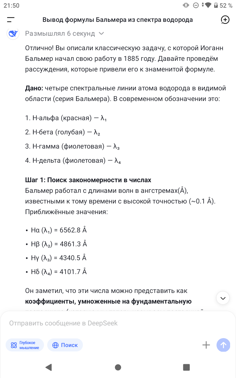 Ты смотри ка а искусственный идиот справился. Это радует. Правда там было две закономерности. И бальмер выбрал ту которая могла записаться в виде простого соотношения исходя из своих идеологических соображений.