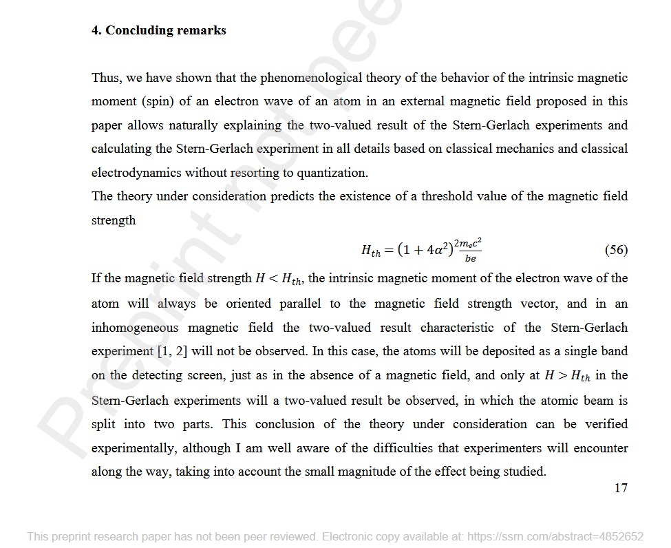 >Если энергия классического волнового пакета ),( trE меньше энергии одного «фотона» ωh , необходимо прибегнуть к вероятностной интерпретации (1), тогда выражение (18) следует интерпретировать как ограничения на точность одновременного измерения положения и импульса «фотона». Как мы показали выше, для объяснения многих «квантовых эффектов» нет необходимости использовать такое понятие, как «фотон»,как реальный физический объект. Поэтому в действительности выражение (18) не имеет большего смысла, чем выражение (17).