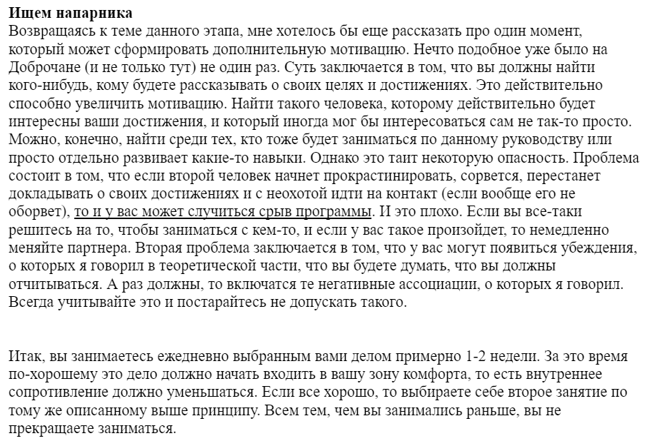 Так что часто нужна не мотивация, а какой-то кнут или договорённость, в которую нужно впрячься.