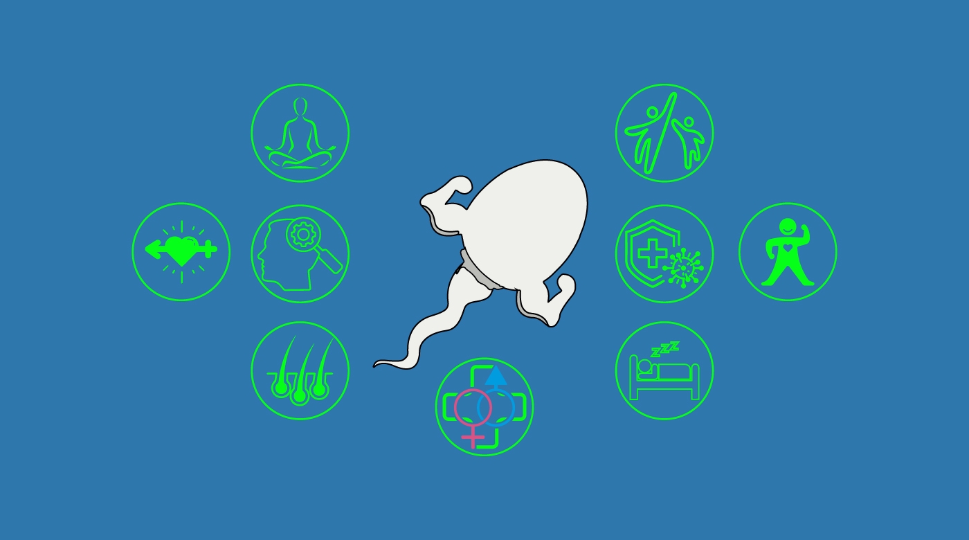 Изучающие физиологическую химию центральной нервной системы подчеркивают тот факт, что в активной протоплазме каждой нервной и мозговой клетки наиболее важными составляющими являются лецитин и холестерин. Они также являются основными составляющими семени, которое, как и мозг, также является жировым веществом. Эти факты ясно указывают на существование важной биохимической связи (через кровь) между спермой и центральной нервной системой: лецитин, по словам Саджу, является «заметным компонентом мозга, нервов, яичного желтка, спермы