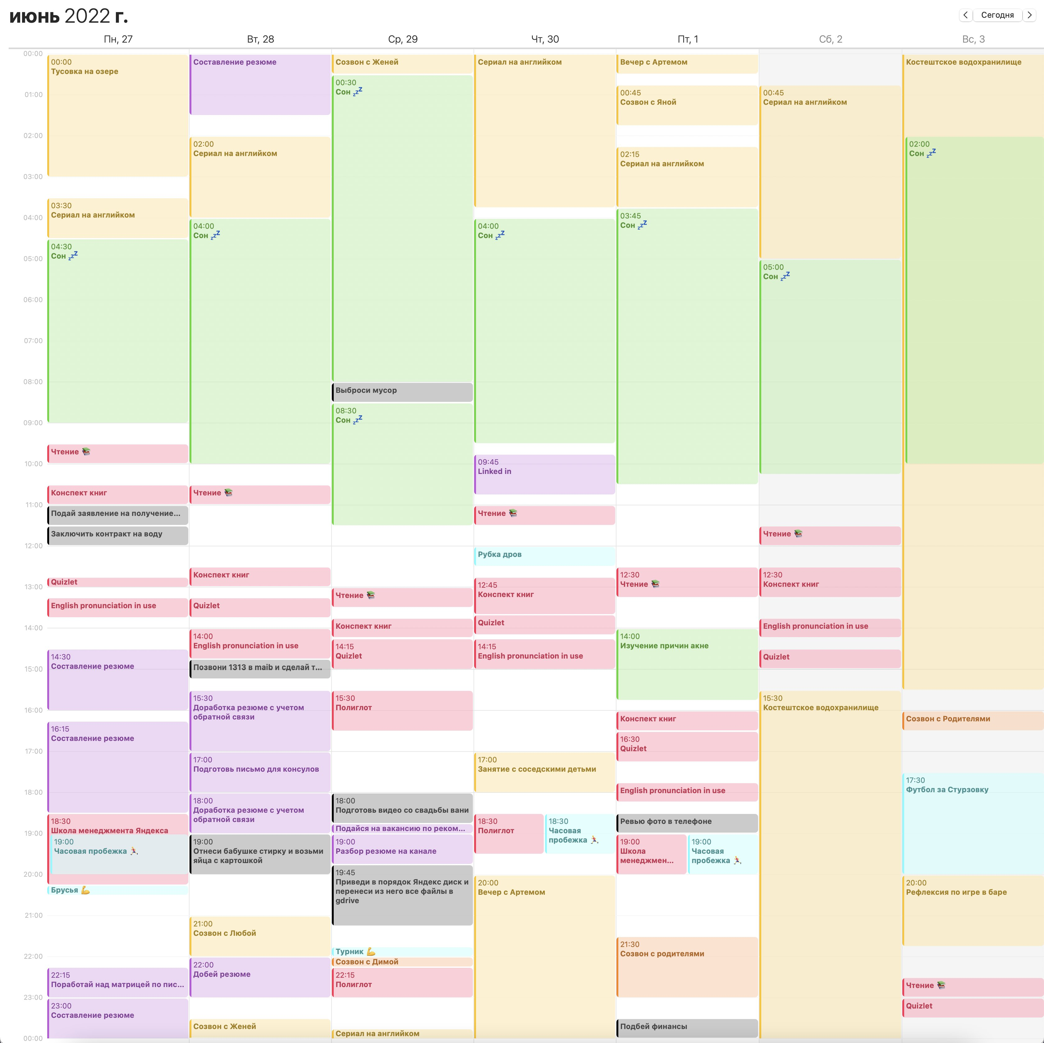 >>108080 Когда-то тоже пробовал по календарю планировать, но имхо это лютый дроч, неудобства и отсутствие вариативности. Хотя, может, кому-то и зайдёт, но мне из-за свободного рабочего графика удобней просто писать в ту-ду менеджер задачи на день, а затем уже в голове прикинуть, что и когда я могу сделать.
