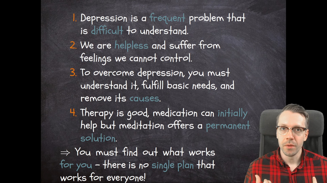 - Метаисследование, что депрессия не вызывается химическим дисбалансом веществ внутри организма и про это он говорит много в своих видео.