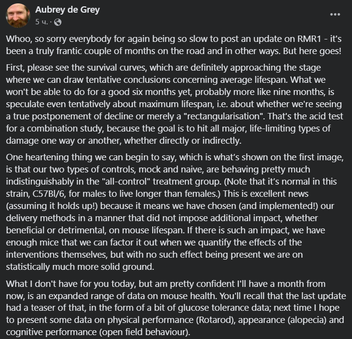 алсо: https://www.levf.org/projects/robust-mouse-rejuvenation-study-1/study-updates тут рапа+ всякое разное, сенолитики в основном. Исследуtтся именно на предмет синергии, все на мышках, при чем на немодифицированых, что очень большая редкость, т.к. в основном работают на дизайнерских мышах, в силу мноооогих причин.