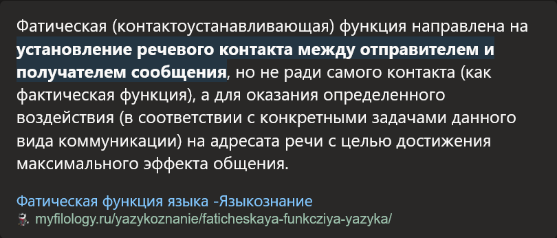 И опять это всё фатика, установление контакта и проверку на отзывчивость и дружбу. В ней играет роль не само содержание, а всё что мимо строк проходит.