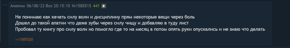 >>113227 > Если человек не может заставить себя даже зубы начать чистить