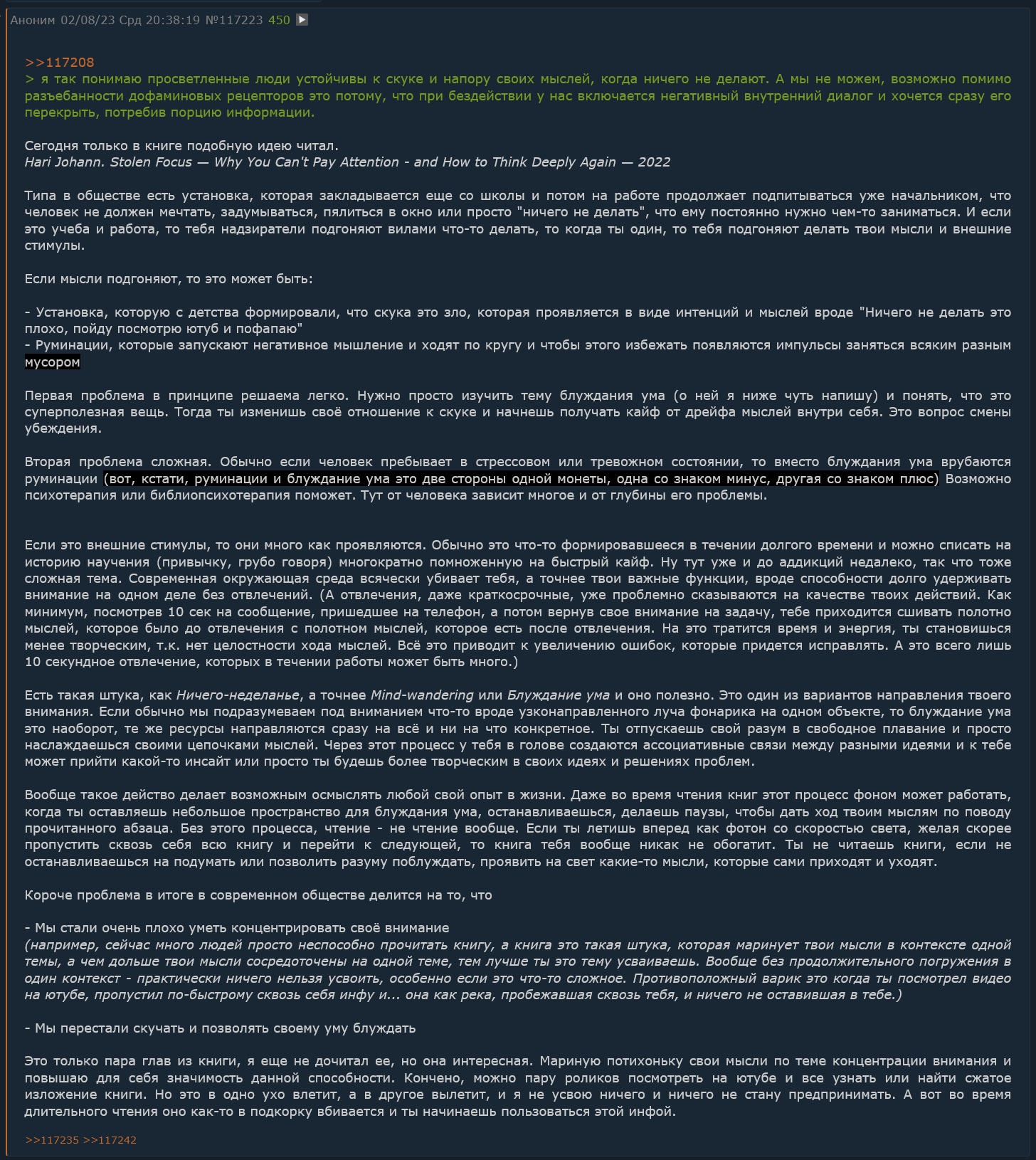 Даже вот чел зашел, и сразу спрашивает "какую книгу почитать про прокрастинацию", ну это же сюр