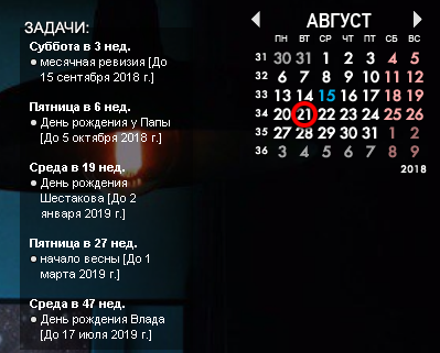 Google Calendar+приложение Расписашка+телефон на андроиде. Расписашка - приложение для расписания пар (я студент) с последующем интеграцией его в Google Calendar. Есть одна проблема, которую так и не решил - на телефоне в Calendar Расписашку вижу, а на компьютере нет. Не смертельно так-то, заполняю расписание, когда одновременно всегда около меня телефон и компьютер. Виджет Календаря на главной телефона при разблокировке. Уведомления - всплывают на экран (есть в настройках каждого мероприятия по расписанию), так как телефон я держу в руках около 60% всего времени, когда я на ногах. В зависимости от того, как пользуетесь телефоном, ставьте уведомления, то есть как будильник или как просто всплывающее сообщение. Притом я дошел дальше, у меня на каждый день поставлено: время подъема время отведенное на чистку зубов и умывание время зарядки время залипания в телефон (ну не могу пока утром от этого отказаться). Вечером - душ, умывание И сон.