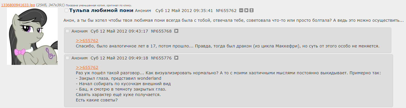 Что сказать хотел, все это реально. Что хоруфаг рассказывал херня все. Настоящая тульпа живет своей жизнью, на ней не нужно внимание держать, она сама может завести диалог.