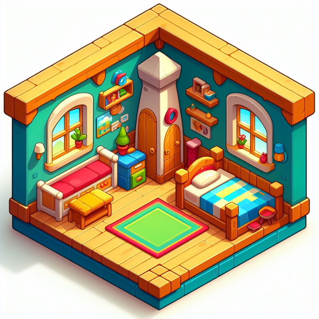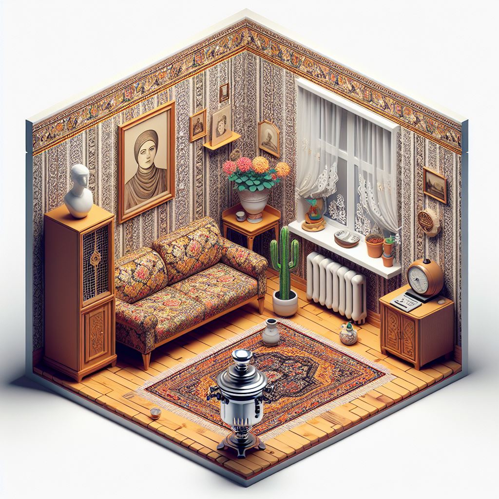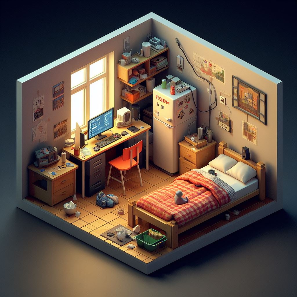 Промты на пиках следующее: Room, cartoon, 3d isometric model(1 пик), Poor room for gaming, 3d isometric model (2 пик), Post-soveit room, 3d isometric (3 пик).