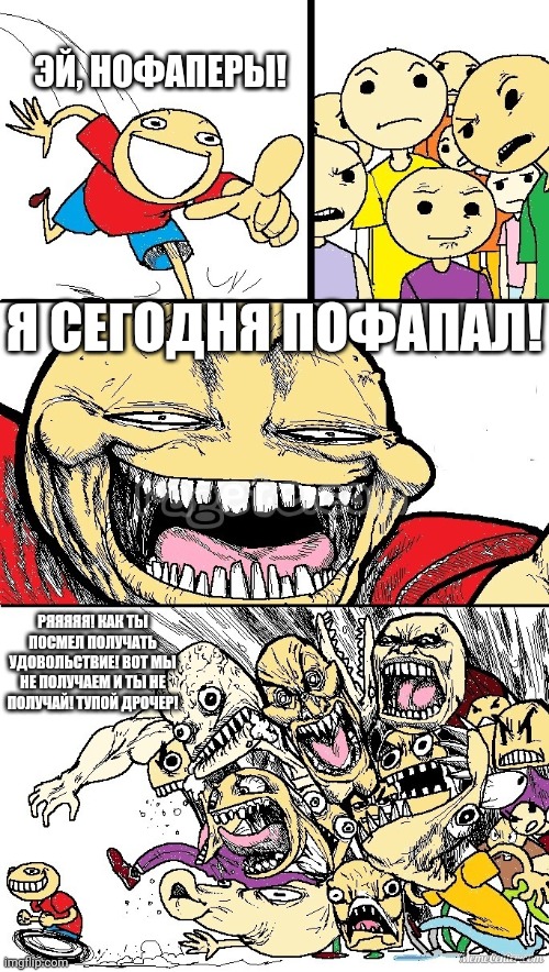 Это ответ, почему подобные индивиды не сидят в тредах для дрочеров, а идут к настоящим мужчинам с сильной волей - к нофаперам. В тредах для дрочеров уныние и тоска, там все апатичные, немотивированные, вялые, среди таких неудобно и уныло. А здесь - интеллект, уверенность в себе, взаимоподдержка сорвавшихся, здоровая атмосфера. Другими словами все то, что дрочеры спускают в унитаз день за днем. Я не знаю, стоит ли твое мнимое "удовольствие" всего этого, каждый решает сам. Но раз ты провоцируешь людей, значит ты явно неполноценный, тебе не хватает чего-то, у тебя проблемы в личной жизни или с психикой или оба варианта. Не могу представить зачем мне понадобилось бы идти на тематическую доску каких-нить язычников и говорить им как я сегодня помолился боженьке и разрушил языческое капище. Ты поступаешь так же. Явно не от хорошей жизни и явно не от избытка психического здоровья. выздоравливай, анон.