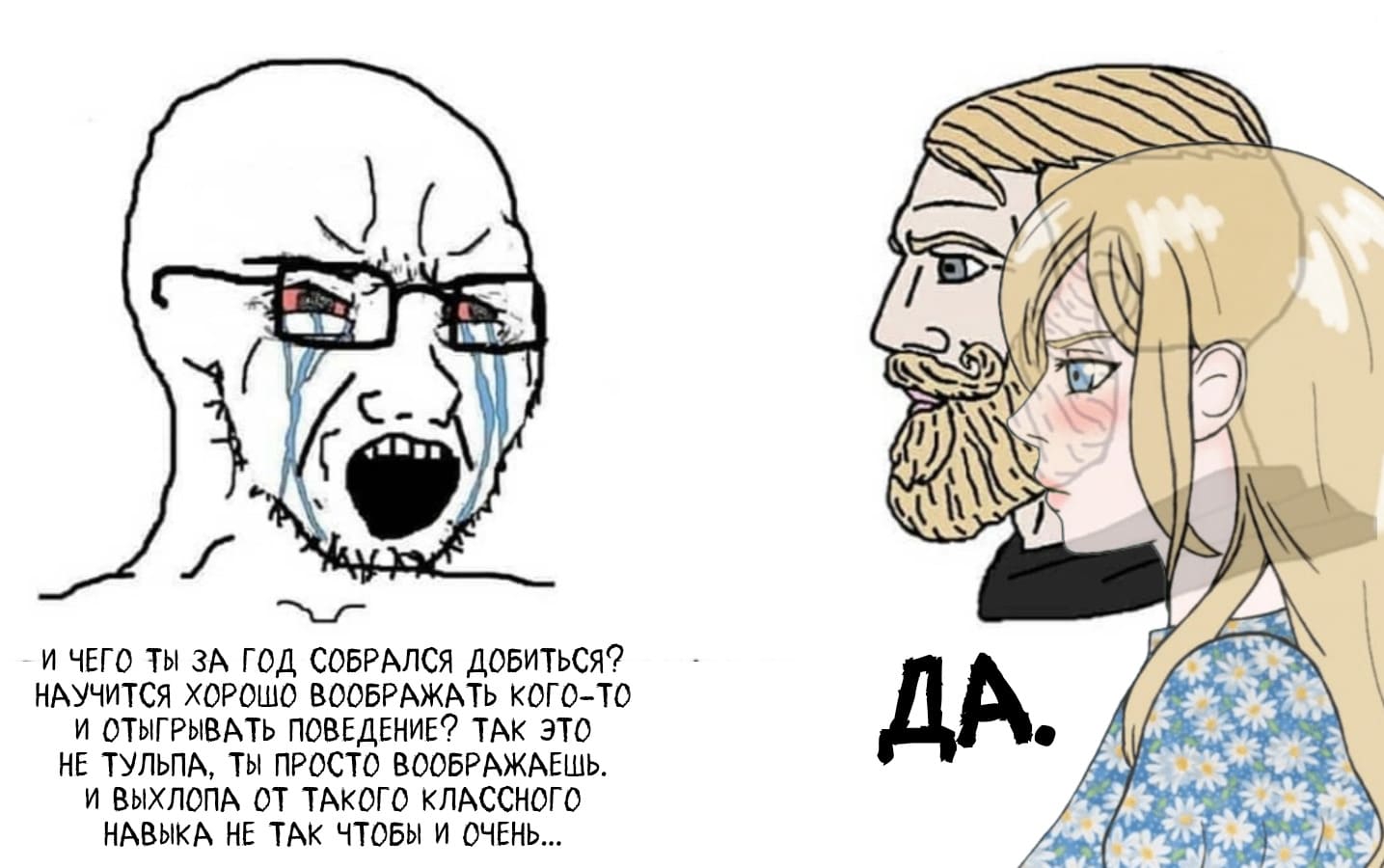 >>126809 >Если речь конкретно про отсутствие улучшений по признакам количества и качества в плане её автономности(?), тогда почему ты благодаря этому пришёл к выводу, что форс завершён успешно? По тому что данный исход является удобоваримым и достаточным для нормальной коммуникации и воплощения интересов друг друга >Ты имеешь ввиду эдакий пик развития и теоретическую невозможность дальнейшего развития? Да. если дальнейшие тесты по по "улучшению" ЦНС окажутся безсмысленными.. >А речь идёт про веру в себя и свою няшу прежде всего А какая нахуй разница! Есть объективная реальность (та что принимает большинство), есть субъективно - объективная реальность (то что есть объективным для лично тебя) верный выбор объяснение: для особо тупых >отрицать по итогу приводит к искоренению веры в неправильности и неработоспособности некоторых техник на старте. Хоть отрицай, хоть не отрицай. Верь - не верь . То что работает, работать и будет. Твоё субъективное отношение к чему либо будет сказывается только на тебя и твое отношение, и то очень частично. >Выходит, что всё-таки человек способен искоренить ненужные убеждения для формирования новых синапсов в мозге, Не выходит... несёшь хуйню - растешь дебилом)) >Ну чтож, в таком случае я ни разу не видел успешно зафорсившего, который бракует свободу выбора. А где ты такое почитал? Сам себе пиздатый друг??