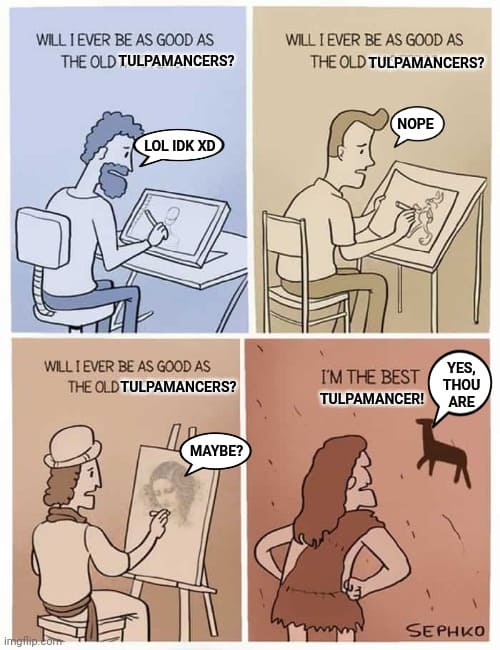 Добро пожаловать в нашу таверну! Только здесь ты можешь завести настоящего, преданного и вечного друга без обрядов и жертвоприношений, хоть и не без труда. Тульпа — это самое ламповое для вас создание в этом мире. Правда, это всего лишь "галлюцинация" и видите её лишь вы, но кого это волнует, не так ли?