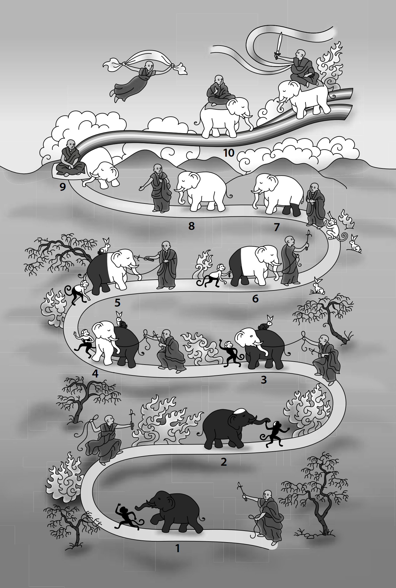 >Человек — думающее существо, но свои самые великие произведения он творит тогда, когда не думает и не рассчитывает. После многолетних упражнений в искусстве погружения в себя он должен прийти к «детской непосредственности». Когда она достигнута, человек думает и в то же время не думает. Он думает как дождь, падающий на землю; как волны, бегущие по морю; как звезда, освещающая ночное небо; как зеленая листва, буйно распускающаяся на нежном весеннем ветру. Он на самом деле является дождем, морем, звездами, листвой. > >Освоив эту ступень духовного развития, человек становится дзэнским мастером жизни. Теперь, когда он рисует, ему не нужны холст, кисть и краски. Когда он стреляет из лука, ему не нужны лук, стрелы или другое снаряжение. Жизнь человека в дзэн выражается с помощью таких важных «инструментов», как тело, голова, руки и т. д. Они являются внешними формами человека. Руки и ноги — это кисти, а вся вселенная — это холст, на котором он будет в течение семидесяти, восьмидесяти, девяноста лет рисовать свою жизнь. Эта картина и будет «историей».