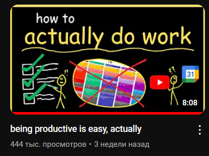 Но опять же повторюсь: все что я описал - это советы, которые я САМ увидел и понял из СВОЕЙ жизни. Они явно помогают МНЕ, но не факт, что помогут ВАМ. Учитывая, что я сам до этого, как и вы, тысячу раз читал про советы по типу "деления задач" и т.д., но они мне не подходили, потому что я не видел конкретного примера в своей жизни, где я сам бы неосознанно применил этот метод, и он бы сработал, так еще я и не понимал какие конкретно границы этого совета мне подходят (создание детального роадмапа, как вы поняли, мне не нравится). Важно подстраивать под себя все эти методы.