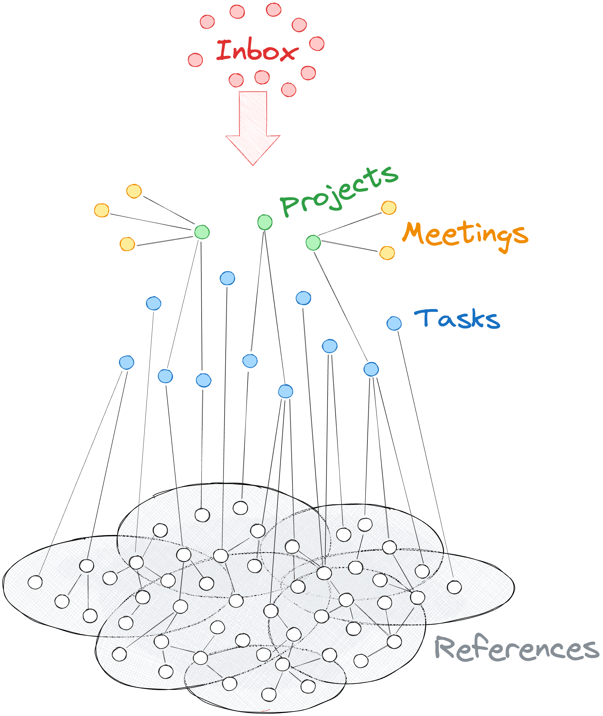 Многие люди не понимает разницы между задачей и проектом. Первое это то, что выполняется за один условный шаг, а проект это коллекция последовательных задач. Большинство того, что люди подразумевают под "работа и учеба" это проекты. И их нужно выгружать в списки дел, оформленных в виде проектов, а не держать в голове и всегда помнить. Именно это "помнить" и является причиной тряски и растрате мотивации, потому что всегда висит в воздухе, в фоне. Вместо того чтобы нормально отдохнуть - у анона постоянная тряска включается от предстоящего.