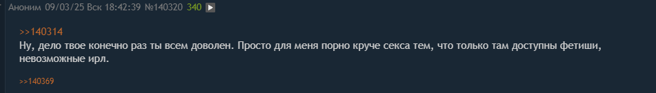 Как вы противостоите повсеместным раздражителям? Буквально весь интернет усеян околоэротическим контентом, его даже специально искать не надо, просто само по себе на глаза попадается, практически в каждую видеоигру (Я не играю в ААА гойслоп с повесткой, он не в счет) добавляют сексуализированных женщин ради фансервиса, в кино тоже полно открытой ебли и симпатичных актрис (Я мог передернуть просто на фото лица и поток фантазий лучше, чем на любое порно), а уж про АНИМЕ я молчу, нахуй, его по хорошему надо и вовсе перестать потреблять в любом виде, иначе срыв гарантирован. В книгах, особенно во всяком трансгрессивном андеграунде содомия и ее подобные описания также частый гость. Уже 200+ дней взял за правило фапать только после 7 чистых дней воздержания, смог соблюдать в основном без каких либо сложностей, так как понимал - все равно ждет разрядка в конце. В данный момент переживаю сложный период в жизни, нужна мобилизация всех сил на великое дело, так что с 23 числа решил соблюдать абсолютный целибат и истинный монашеский нофап, но медленно приходит осознание, ведь срыв то, он когда нибудь неизбежно наступит, я честно говоря в себя совершенно не верю, вряд ли возможно полностью завязать, а убеждение себя в этом не более, чем самообман. >Найди живую тян Не вариант, это ведь нужно удалить все игры парадоксов и сходить в душ. Я хоть и 190 см ростом и не урод, но метаинцел из палаты мер и весов, ничего в себе менять не желаю ради бытия нормисом, мне и так хорошо.