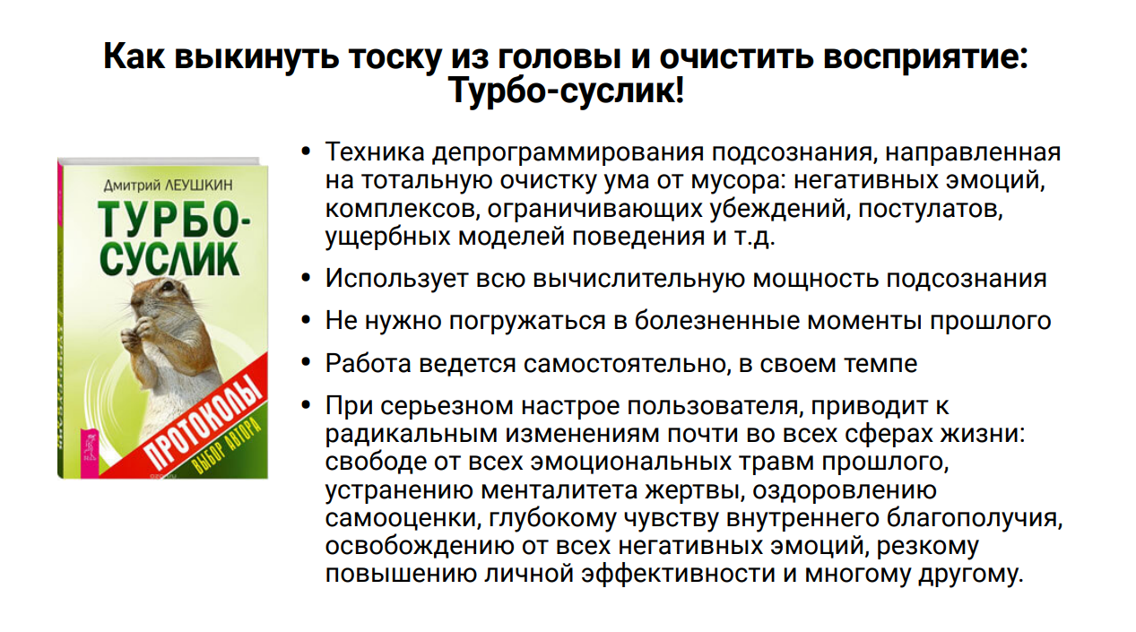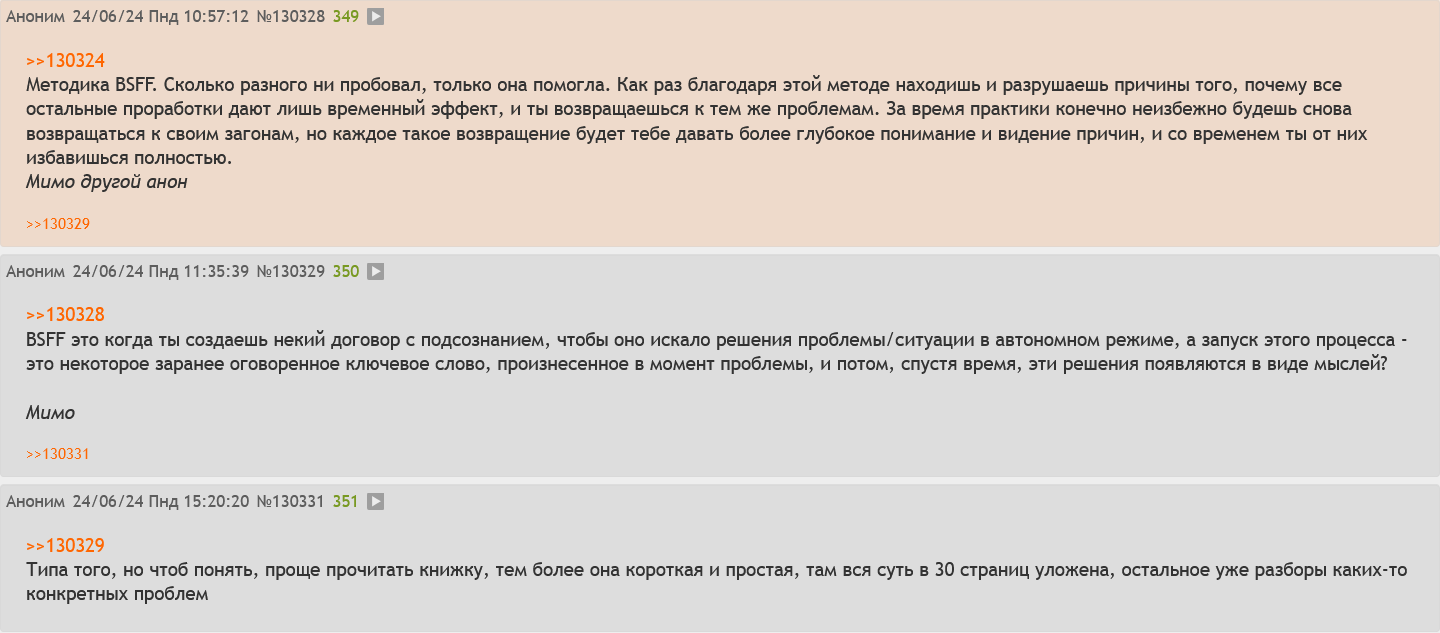 Если BSFF у вас тоже вызывает отторжение, то можно его пропустить и просто продолжать читать книгу. Хотя я уже не отношусь к нему скептически, хоть и не практиковал сам.