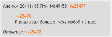 > Отсюда я не понимаю, почему ты пытаешься опрокинуть эти мои теории Мне интересно наблюдать за тем, насколько сильно человек может убедить себя в чём-либо, лишь бы не пытаться сделать свою жизнь лучше не только в фантазиях. Ну, раньше поинтереснее и слаженнее доводы от тебя получал, даже какая-то линейная логика прослеживалась, что случилось? > Во-вторых, твои научные вкиды и попытки прогнуть всех За что ты проецируешь, маня. С тобой лично диалог веду в подыхающем треде. Кого всех то? > всё это тоже никому не интересно Ещё бы. Правда глазоньки колит.