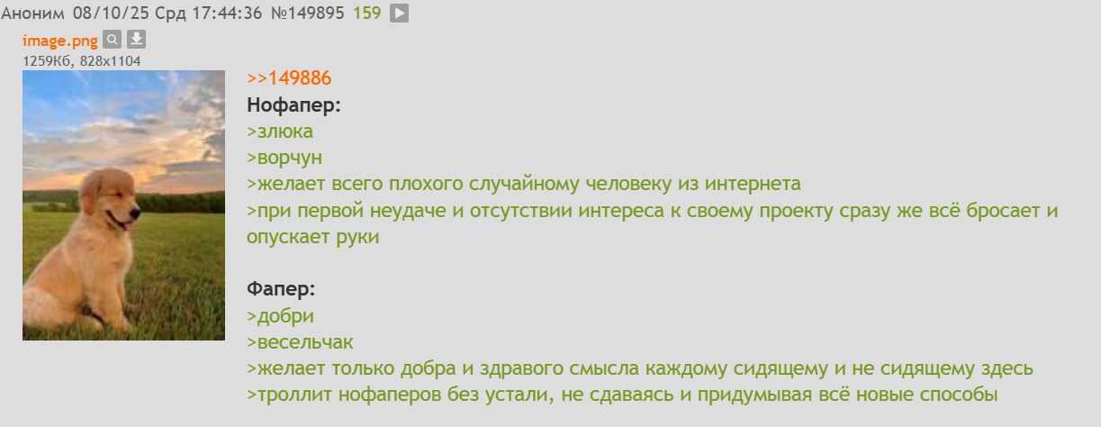 >Если тебе секс не доступен и ты нофапер, значит нофап для тебя средство эти отношения получить, либо какая то компенсация, типо раз бабы не дают, значит буду против секса и стану викингом. Это все варианты которые ты смог придумать? Ты просто проецируешь свое отношение на мир и на других людей, и что вообще может реальности не соответствовать.