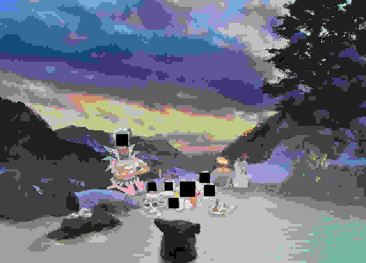Кстати, совсем забыл, хотел добавить настроения фотками которые сохранял пока пять часов в поисковиках просидел пытаясь фон подобрать. Временами попадаются конечно ебейше красивые горы, меня аж самого туда тянет. Даже от ИИшек не плевался как обычно, реально прям какую-то магию ощущал пока картиночки листал. Жаль что так в итоге ничего и не нашёл и пришлось сильно редактировать, но судя по реакции никто ничего не заметил, так что задача выполнена, я спокоен. Нате вам двухминутные фотошопы, причёсывать лень. >>153984 Не укладывается что, прости? Я тоже характера своих не знаю до конца. Было когда-то ощущение что по большей части знал, сейчас ощущение что знаю меньше чем наполовину, да и с этой частью вопросики. >У меня регулярно всплывают в голове именно анимешные Анимешные что? Характеры? Бля, у меня не только тульпы этим занимаются, я сам по отношению к ним этим занимаюсь. Вспомню откуда-нибудь реакцию и подражаю, показывая им образ самого себя, отвечающего в манере какого-нибудь человека или персонажа. Или копирую стиль речи. >Мне не особо помогало, даже когда жизнь была чуть разнообразнее. А при чём тут ты? Тебя в этой формуле нет. Мы о тульпе говорим. Она могла того, как на неё события повлияли, вообще не показывать. Хотя могла бы и показать. >>153985 >Вот как ты объяснишь Шакила в костюме сырны? Обычная чёрная Сырна. Пиздуй луркать если не знаешь. >грязный извращенец... Ну главное там горы и атмосфера уединённого праздника. А что они голые это так, необходимое условие, я их когда кисточкой трогал даже не возбудился ни на грамм и вообще пытался визуально минимизировать эротику. Не считаем тот раз когда я новый сайт с порнокартинками нашёл, но там я отвлёкся и только на Хоро... Я вообще ещё с лета мечтал сделать пикчу с открытым снежным онсэном, но тогда бы оно под сезон не подошло. Исполнил получается небольшую мечту. Больше всего доёба к теням не понимаю, с ними всё реалистично настолько, насколько это вообще возможно. У меня в голове нету мыслей "бля надо ПИЗДАТО сделать, найду самую переосвещённую в мире картинку и нахуярю 20 отражений", я наоборот думаю "для соответствия атмосфере нужен поздний вечер и слабое искусственное освещение, сверимся с ирл фотками и повторим". >>153993 >Или ты реально настолько успешен на самом деле, что у тебя тульпа (зеркало внутреннего монолога) не осознаётся вообще Да я тоже это влияние на внутренний монолог прочувствовал только когда ты сказал лол.