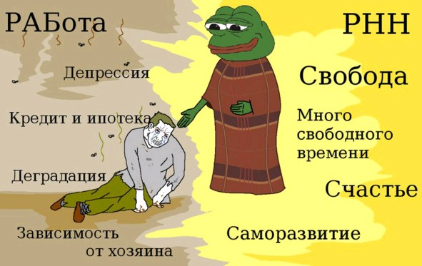 >>16407 Анончик, ещё тише. Всё хорошо. Я уже покрутился в жизни и понял цену денег, уважения, признания и женского тепла. Цена этого - действия и поведение, которое мне не свойственны. Я в процессе вылезача пытался симулировать это поведение и понял, что оно мне чужое. Поэтому взвесив затраты и получаемый профит, я пришёл к выводу, что это мне не подходит, этот мир просто сделан не для меня. Поэтому я нашёл для себя в этом мире то, что мне нравится и продолжаю заниматься этим. Пробуждения не будет. Я уже побывал "там" и понял, что к чему в этом мире. Точно так же, как в 2011, когда гречка взлетела до небес в цене, я просто продолжил есть другие продукты, а не переплачивал в 10 раз, пиная себя пяткой в грудь и крича, что Я ПОЦРИОТ НЕ ОТКАЖУСЬ ОТ РОДНОЙ ГРЕЧКИ.