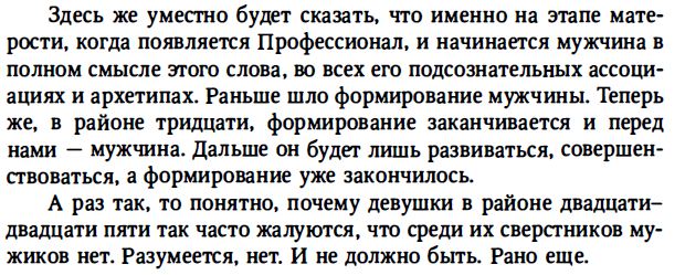 Господа, ОП на связи. Прочитал занятную книжицу: П. Зыгмантович, С. Шишков - От мальчика до мудреца. Мужские тайны. Рассмотрены проблемы воспитания и взросления мужчин, инфантилизма, а также наиболее драматичные вопросы отношений с женщинами (связаны с мужественностью и тем, как мы её теряем). Написана простейшим языком, ибо для широкого круга. Рекомендую. Прочитав эту книгу, я стал меньше беспокоиться по поводу недостатка мужественности (см. пик, я сам 20 лвл), причём сразу я этого не осознал. Понимание пришло немножко позже.