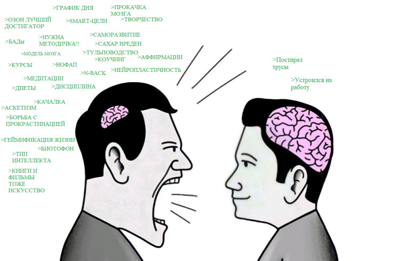 Это называется "псевдосаморазвитие". Эта доска именно что для него. Типа /re/, /mg/ и /zog/. Для шизы.