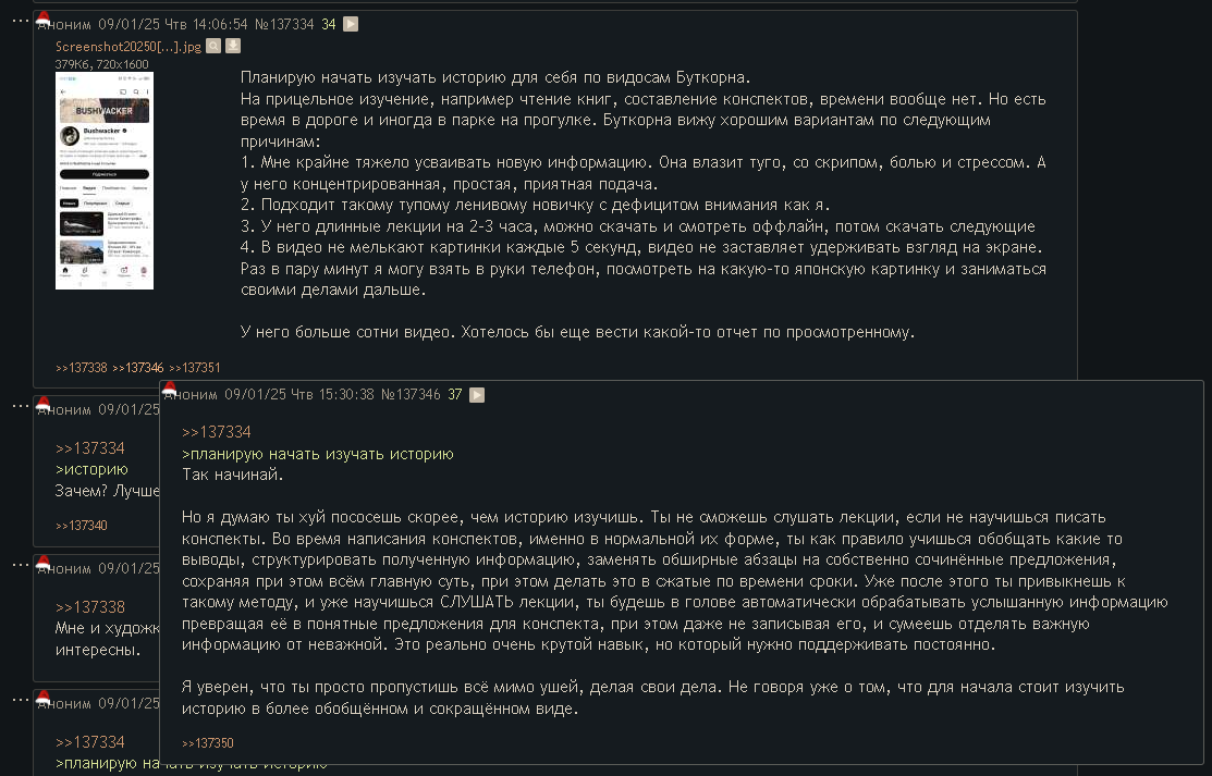 >>154314 Просто слушаешь и пишешь. Чтобы понимать ты должен иметь базу знаний какую-то по области. Я на истфаке учился просто на автомате как-то это все делал, не знаю как получалось. В школе к слову такому не учат, даже на уроках истории там записи минимальные. Также разные лекторы бывают, один будет просто в формате живой беседы говорить и тебе надо выделять оттуда что-то, это самый ненапряжный вариант. Второй это лекторы которые именно начитывают тебе текст, по сути как нейронка, а ты записываешь под диктовку, хотя тут все равно надо постоянно сокращать. В айти навык полезен в области софтскилл т.к. ты можешь структурировать чужой фидбэк или свой фидбэк кратко описывать, текстовая переписка также прокачивается, в целом тупо коммуникация улучшается с точки зрения бузинесса.