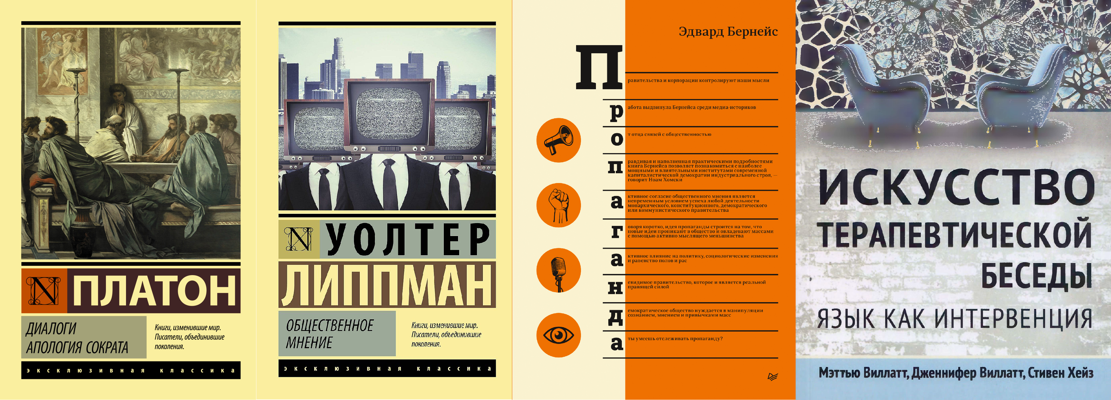 Книги по пропаганде, потому что они рисуют общую картину психологии общества и способы воздействия на него. Нужно понимать, что уровень общества и уровень индивида схожи, и что концепции для одного масштаба могут работать и на другом приближении.