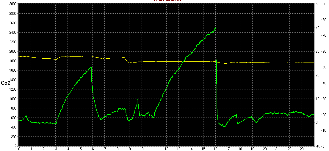 >>83451 У меня был датчик потестить эту фигню. В комнате (3х4х2) к утру зашкаливает (доходит до 3000). До 1000 доходит меньше чем за час после полного проветривания до 400. С закрытой дверью - с открытой достаточно в соседней комнате открыть окно, чтобы больше 800 не набегало. Собственно, вот графики - первый по часам, второй по минутам (показываю, что проветривается меньше чем за 5 минут почти до 400) Я попробовал неделю не поднимать выше 800 - и никакой разницы кроме невероятного раздражения от шума машин с улицы не заметил - дико мешают днём и не дают заснуть по часу и дольше. Этот шум вредит намного больше любого углекислого газа. Если открыть в соседней комнате и включить вентилятор в коридоре, чтобы в моей основной комнате был низкий уровень - то просто никакой разницы, сплю такое же количество часов, высыпаюсь так же, уровень энергии схожий.